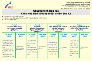 Đào tạo các kỹ thuật detailing chuyên nghiệp như đánh bóng, phủ ceramic, vệ sinh nội – ngoại thất và chăm sóc toàn diện. Học viên được thực hành trực tiếp trên xe thật.