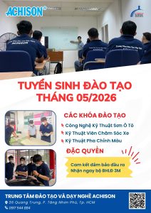 Trung tâm Đào tạo Dạy nghề Achison thông báo tuyển sinh khóa học sơn ô tô tháng 05/2026, với chương trình đào tạo chuyên sâu, chú trọng thực hành thực tế, giúp học viên vững tay nghề và sẵn sàng làm việc ngay sau khi tốt nghiệp.
